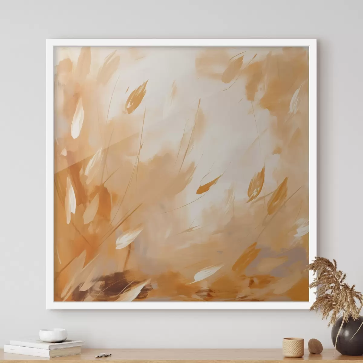 Poster Abstracte bloemblaadjes en stelen in olieverfstijl N° f46319