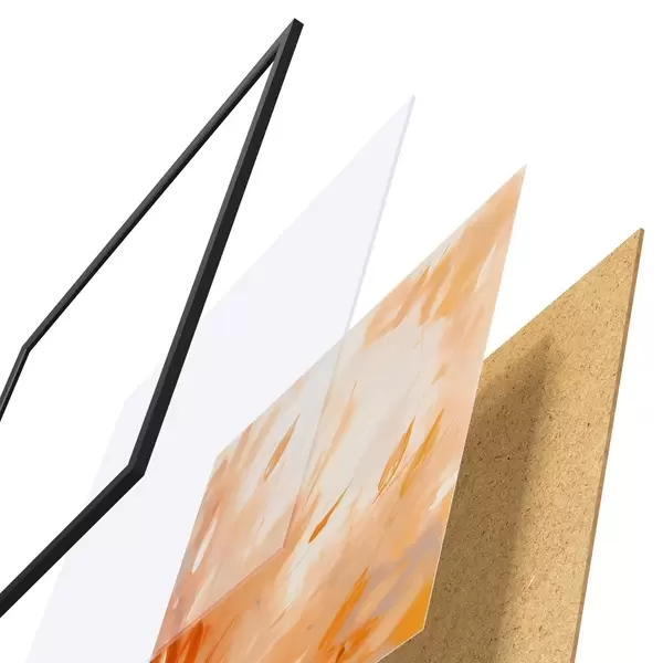 De poster bestaat uit een frame, plexiglas, geprinte afbeelding en spaanplaat achterkant. De poster kan meteen aan de muur worden gehangen dankzij de bevestigingen op de achterkant.