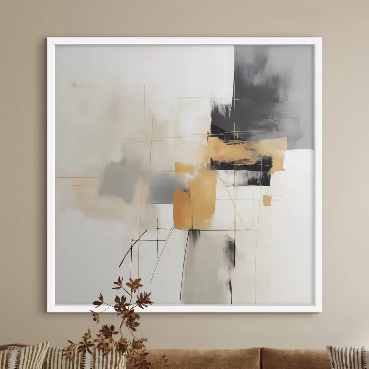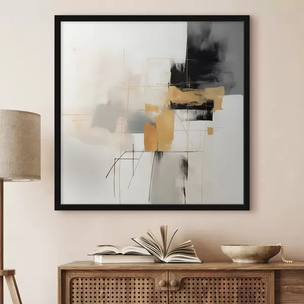 Poster Moderne schilderkunst, beige, perzik en grafietaccenten f46323