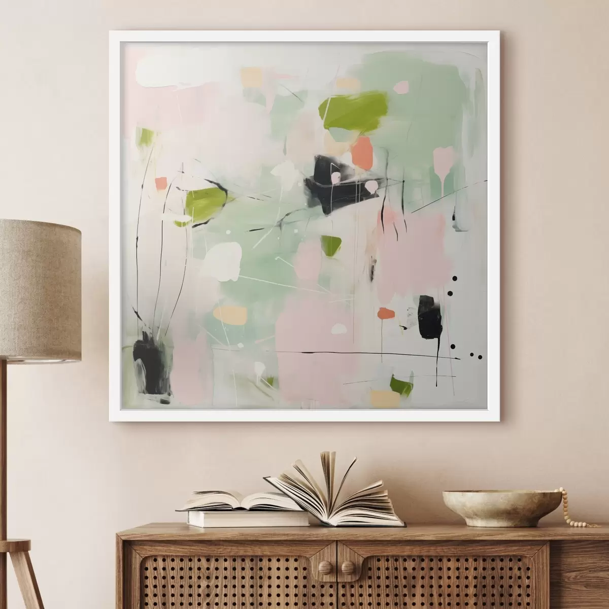 Poster Roze en mintgroen, pastelkleurige penseelstreken N° f46324