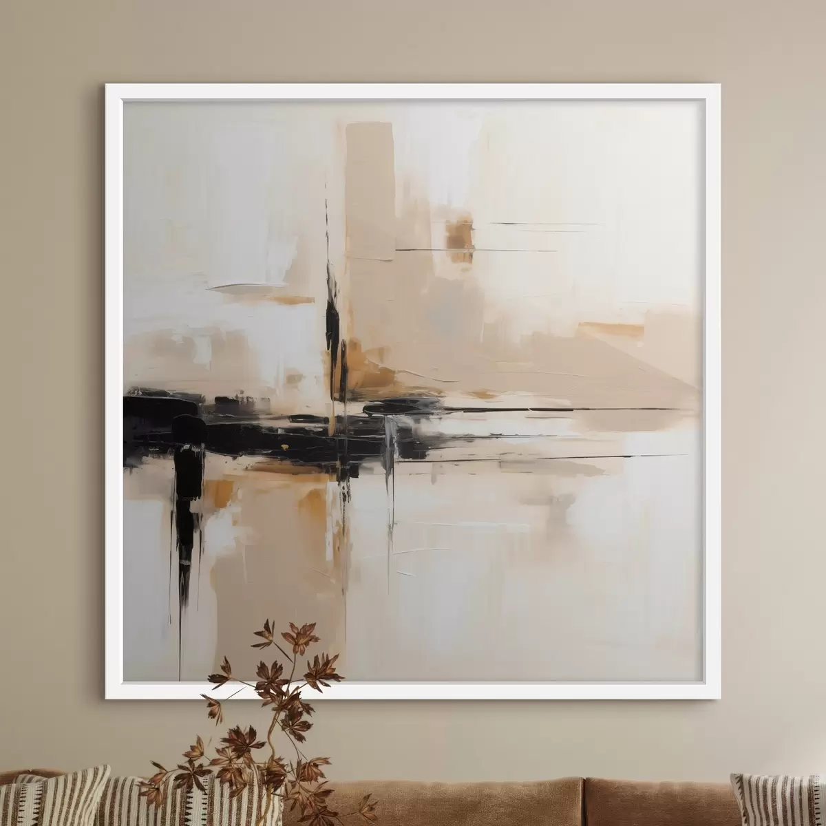 Poster Beige en zwart, verticale abstractie in minimalistische stijl N° f46326