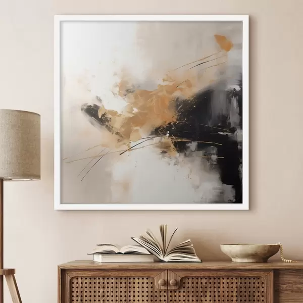 Poster Oranje en zwarte streken, moderne abstractie N° f46327