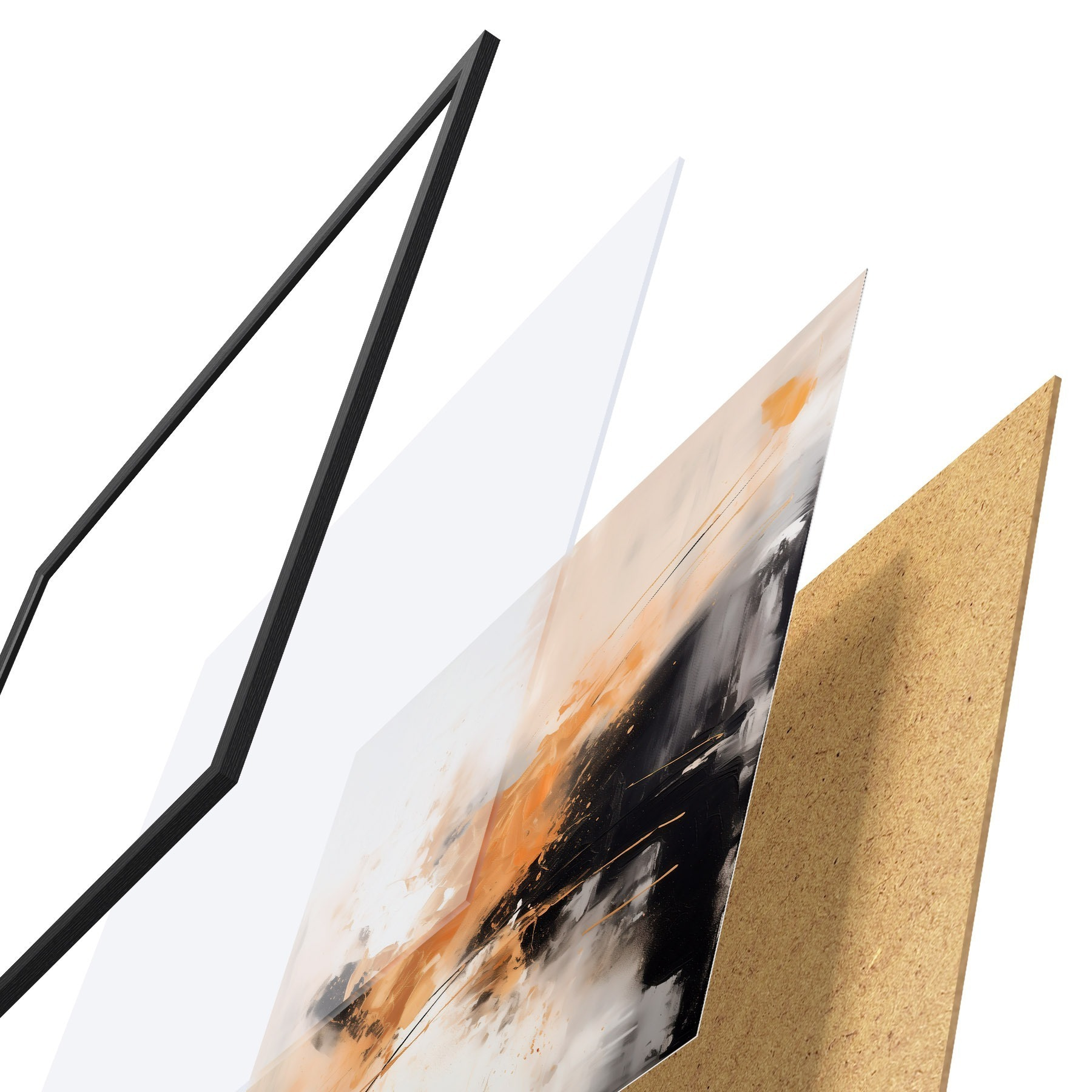 Poster Oranje en zwarte streken, moderne abstractie f46327