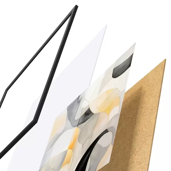 De poster bestaat uit een frame, plexiglas, geprinte afbeelding en spaanplaat achterkant. De poster kan meteen aan de muur worden gehangen dankzij de bevestigingen op de achterkant.