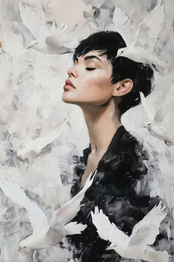 Poster Meisje en vogels N° f46365