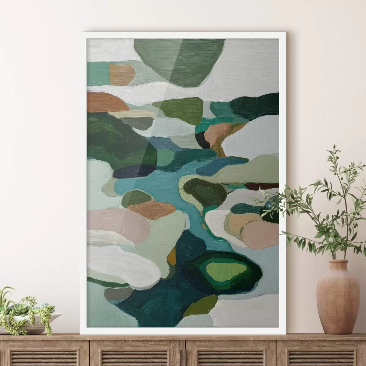 Je kunt het schilderij ophangen aan schroeven. Hiervoor leveren we bevestigingen bij onze foto's, zodat je de foto gemakkelijk kunt ophangen.