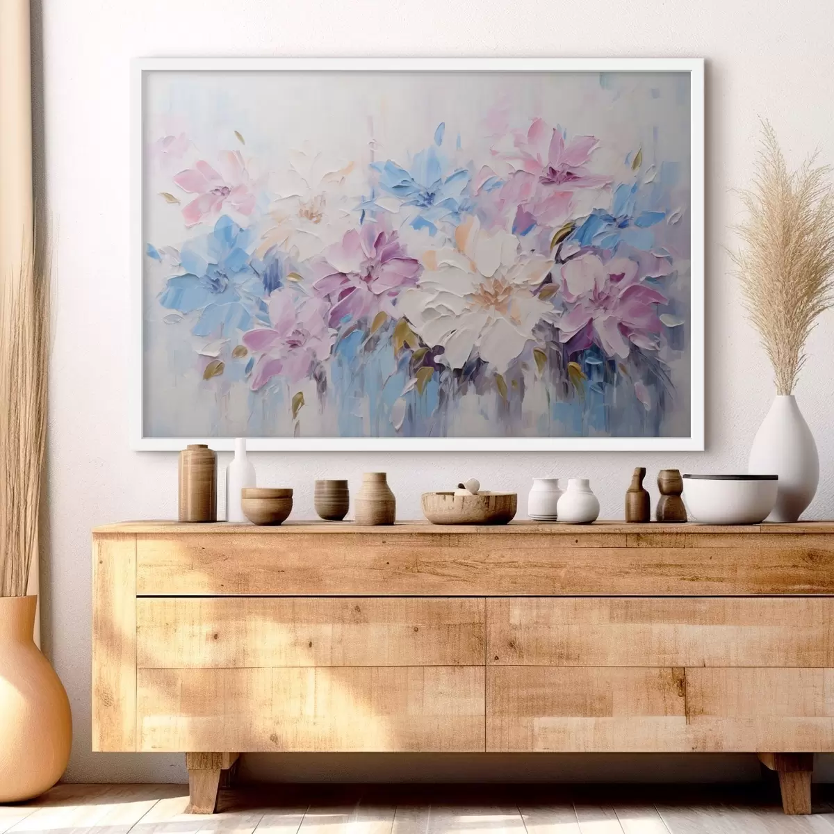 Je kunt het schilderij ophangen aan schroeven. Hiervoor leveren we bevestigingen bij onze foto's, zodat je de foto gemakkelijk kunt ophangen.