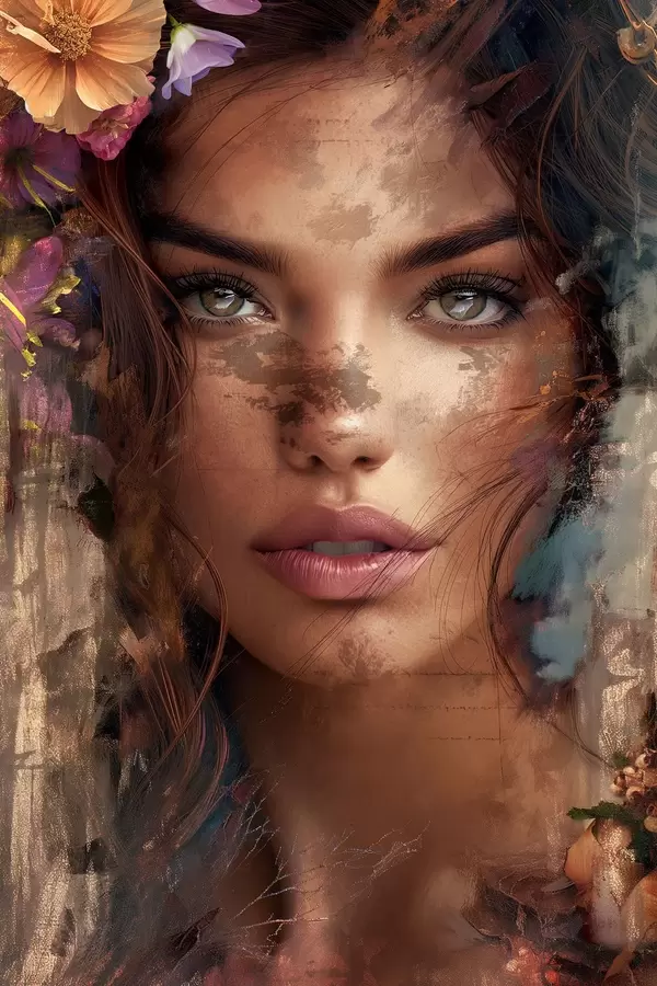 Poster Meisjesgezicht met verf N° f46379
