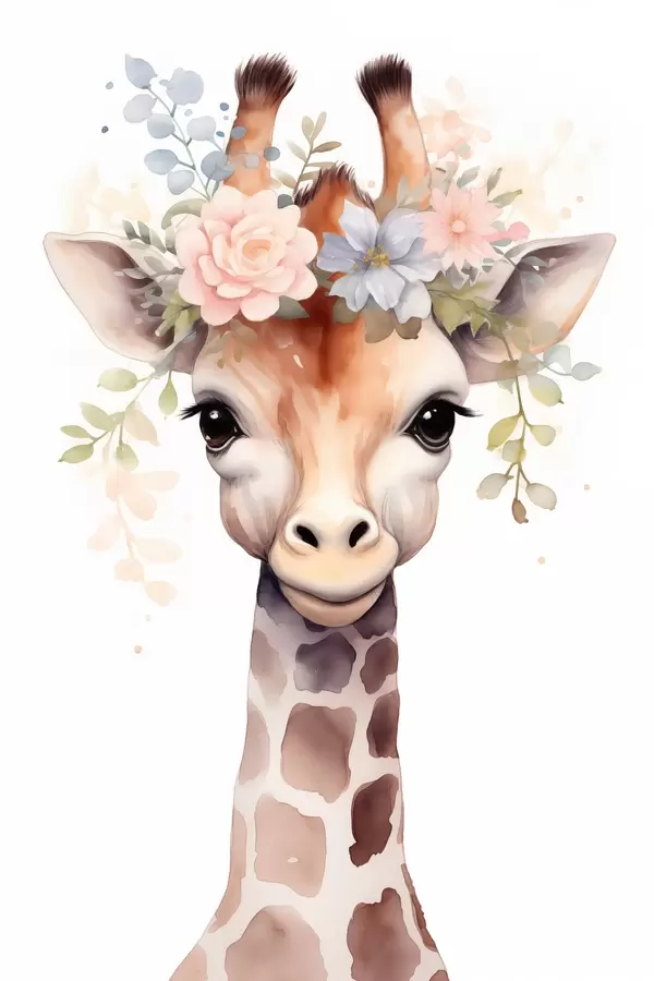 Poster Giraffe met bloemen f46382