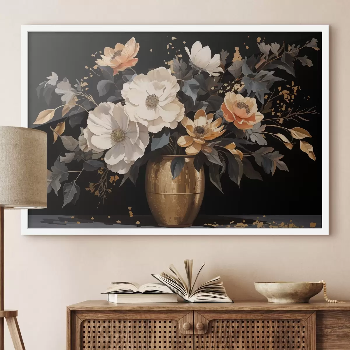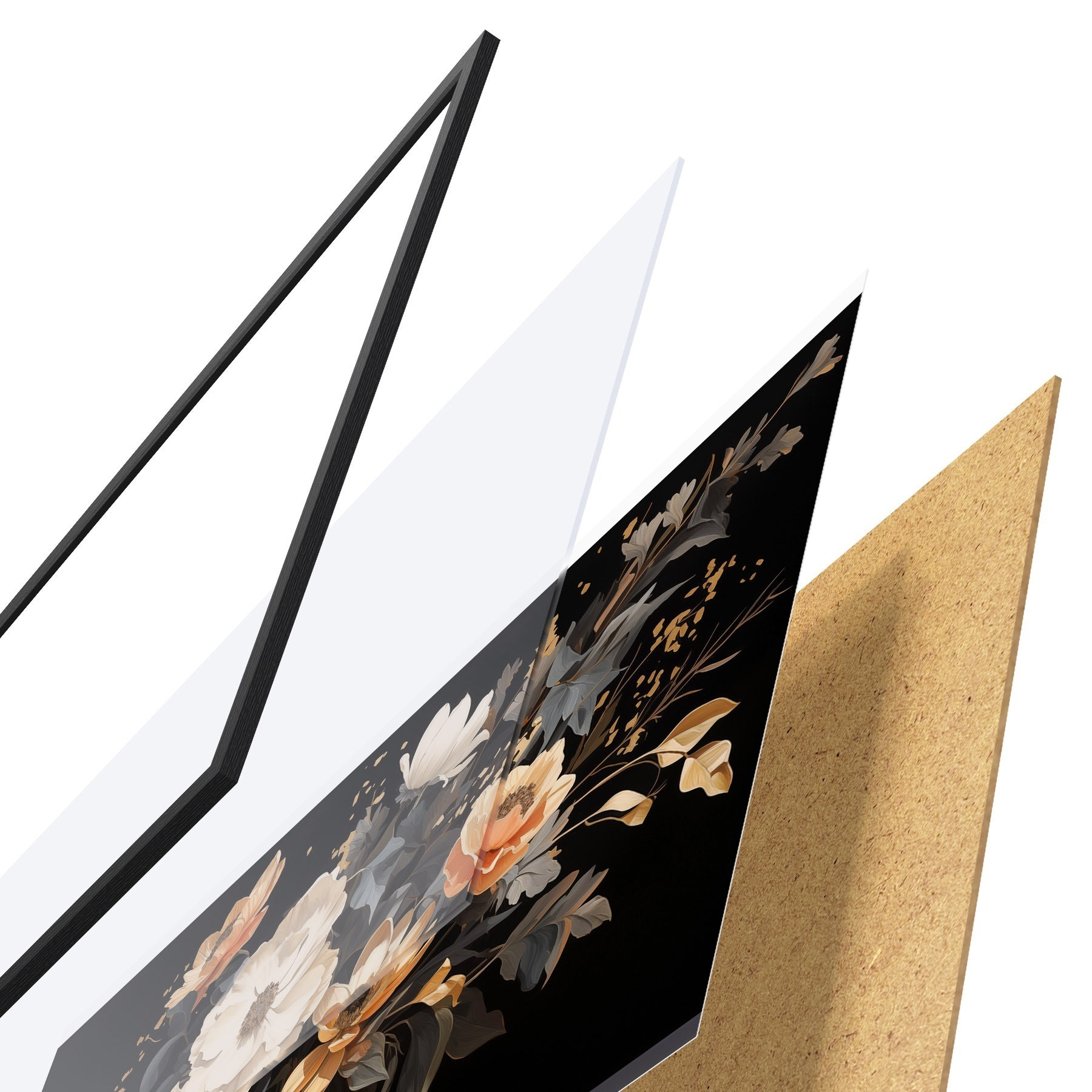 De poster bestaat uit een frame, plexiglas, geprinte afbeelding en spaanplaat achterkant. De poster kan meteen aan de muur worden gehangen dankzij de bevestigingen op de achterkant.