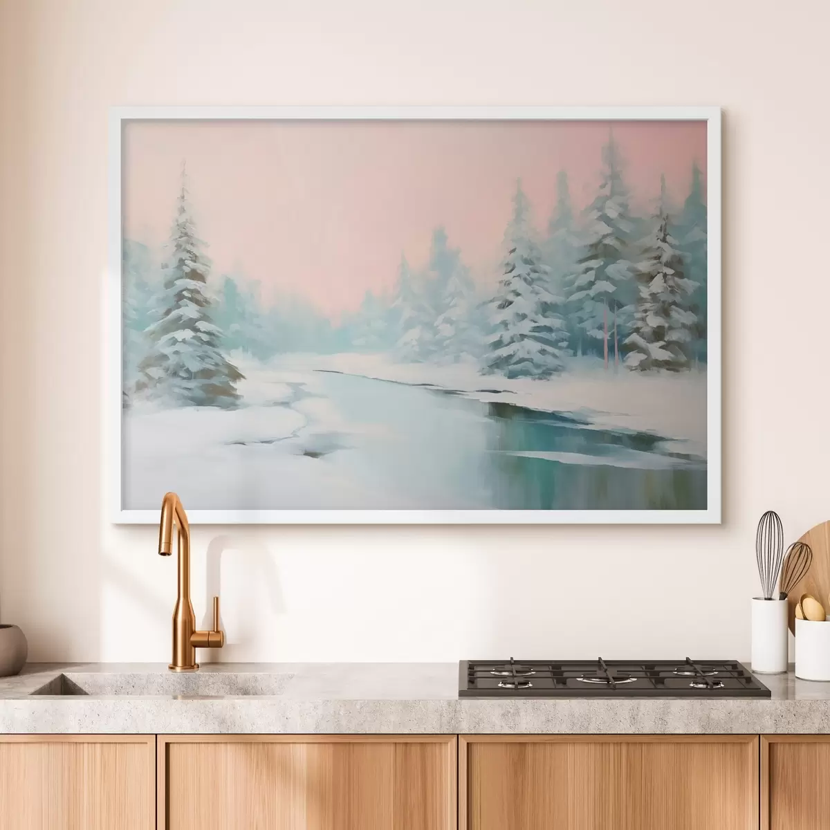 Je kunt het schilderij ophangen aan schroeven. Hiervoor leveren we bevestigingen bij onze foto's, zodat je de foto gemakkelijk kunt ophangen.