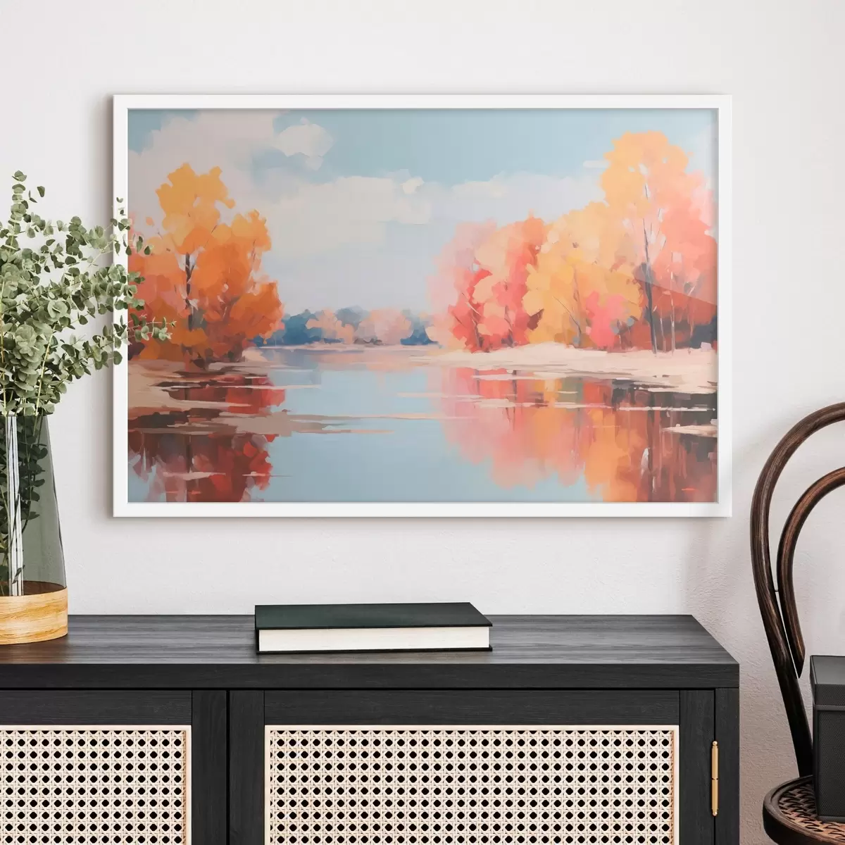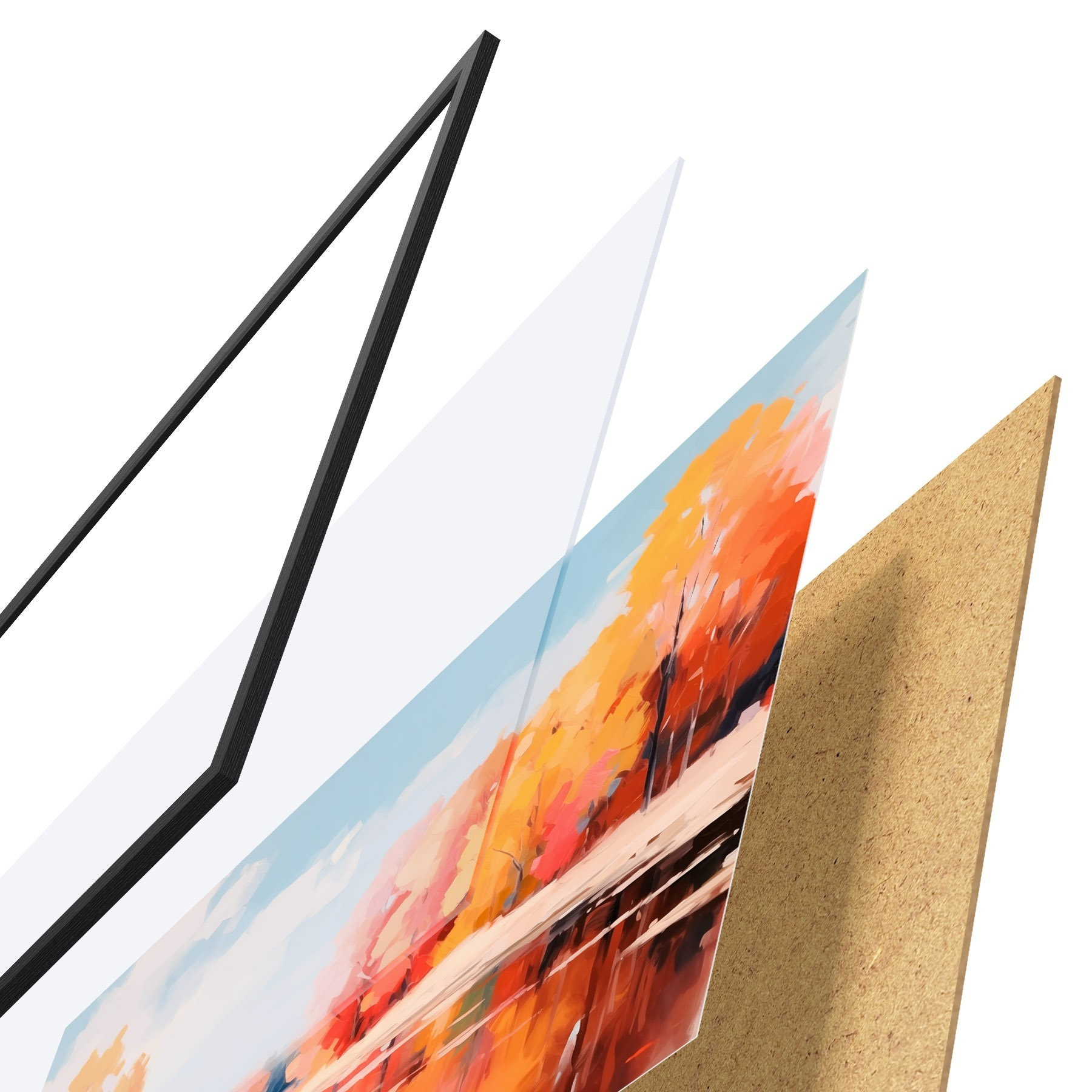 De poster bestaat uit een frame, plexiglas, geprinte afbeelding en spaanplaat achterkant. De poster kan meteen aan de muur worden gehangen dankzij de bevestigingen op de achterkant.