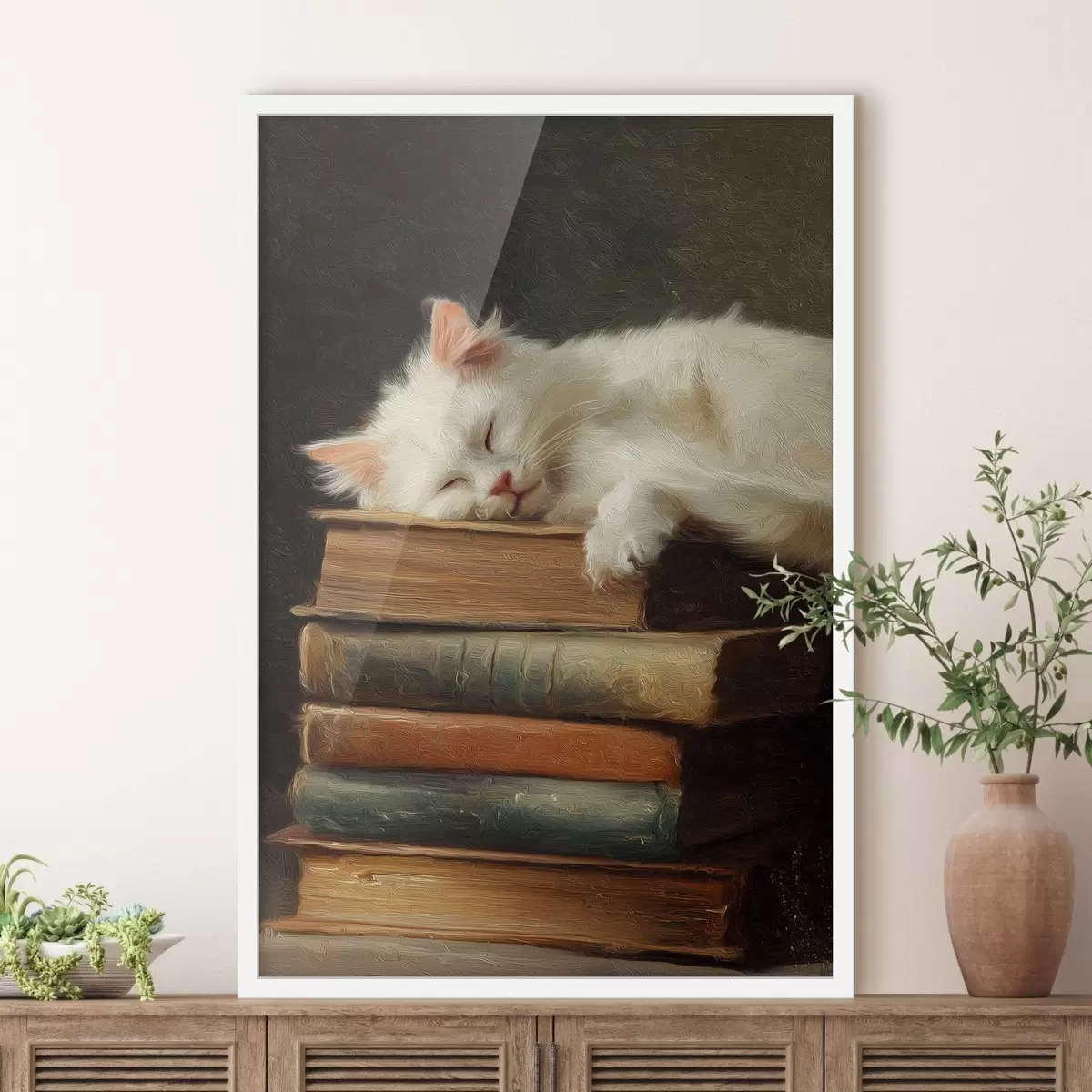 De poster bestaat uit een frame, plexiglas, geprinte afbeelding en spaanplaat achterkant. De poster kan meteen aan de muur worden gehangen dankzij de bevestigingen op de achterkant.