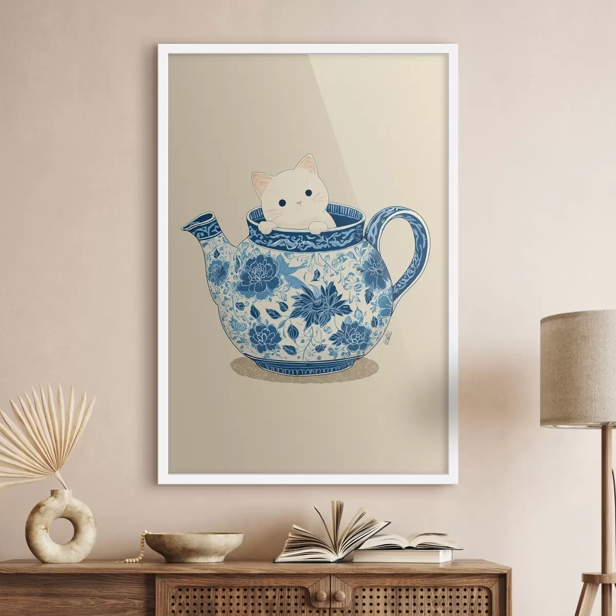 De poster bestaat uit een frame, plexiglas, geprinte afbeelding en spaanplaat achterkant. De poster kan meteen aan de muur worden gehangen dankzij de bevestigingen op de achterkant.
