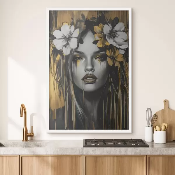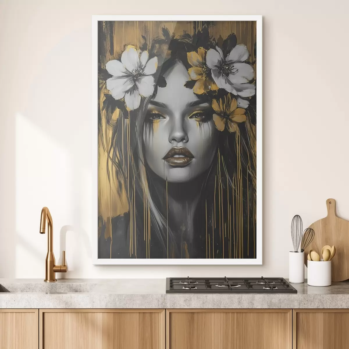Poster Abstract portret van een vrouw met bloemen N° f46454