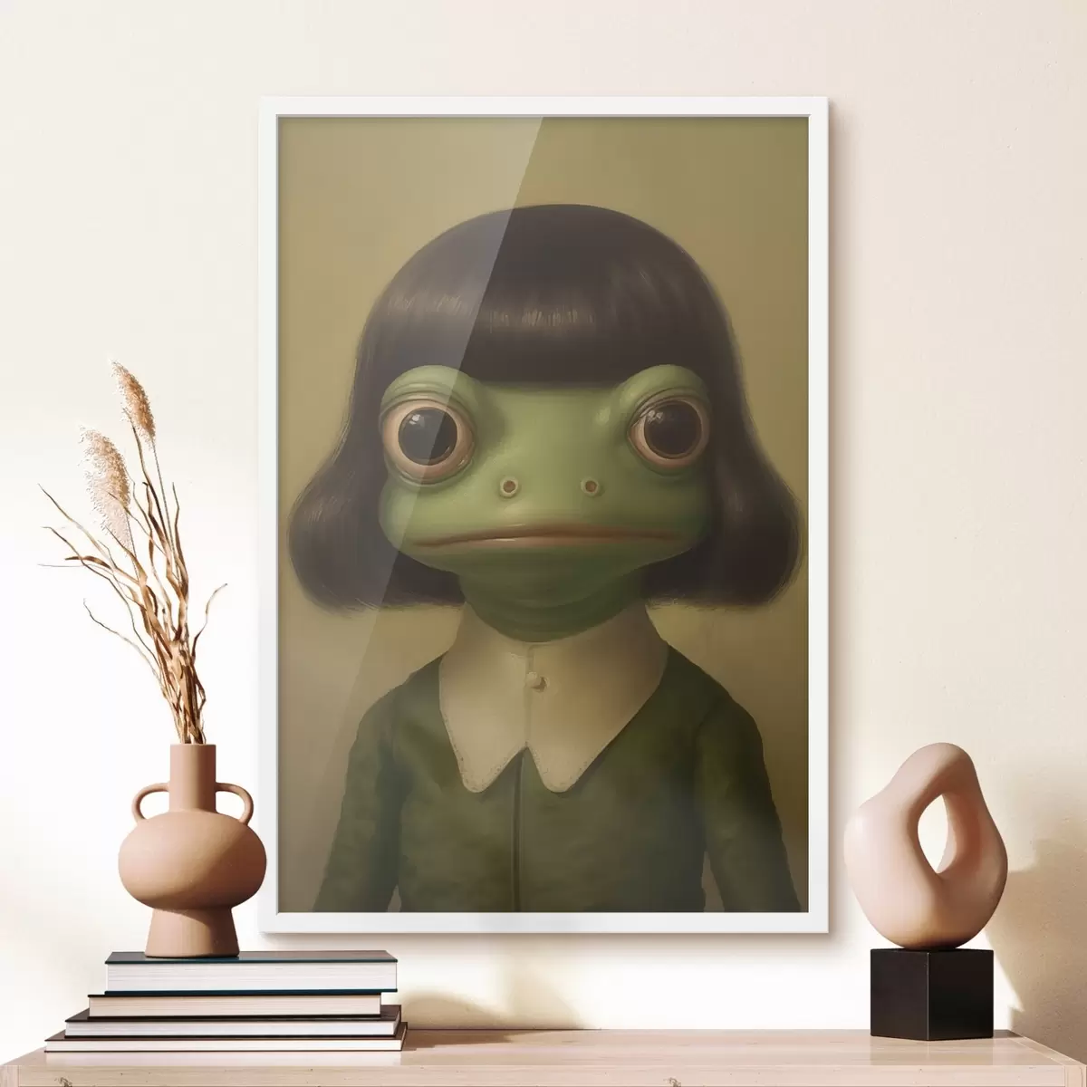 Poster Meisje in vintage-stijl met kikker N° f46458