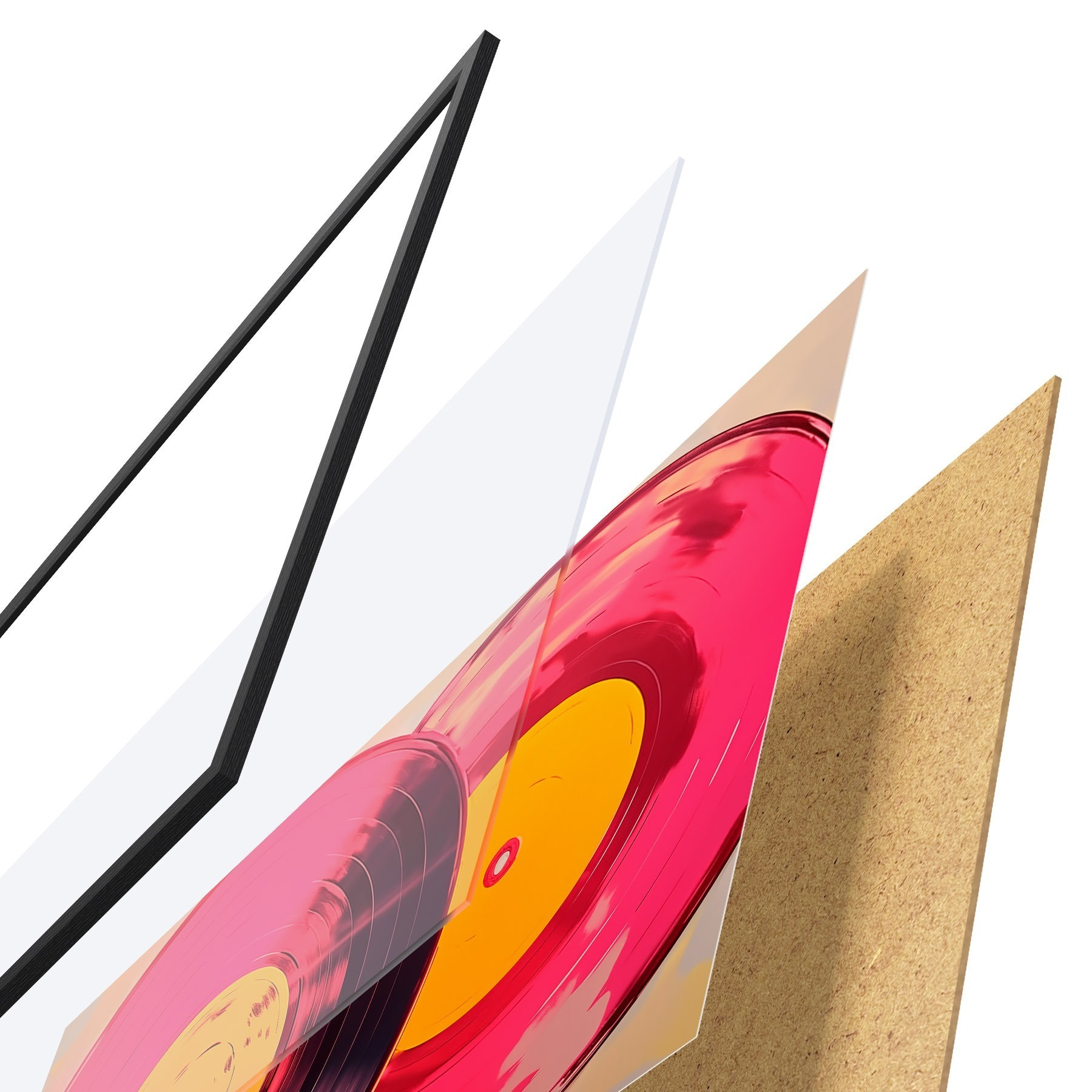 De poster bestaat uit een frame, plexiglas, geprinte afbeelding en spaanplaat achterkant. De poster kan meteen aan de muur worden gehangen dankzij de bevestigingen op de achterkant.
