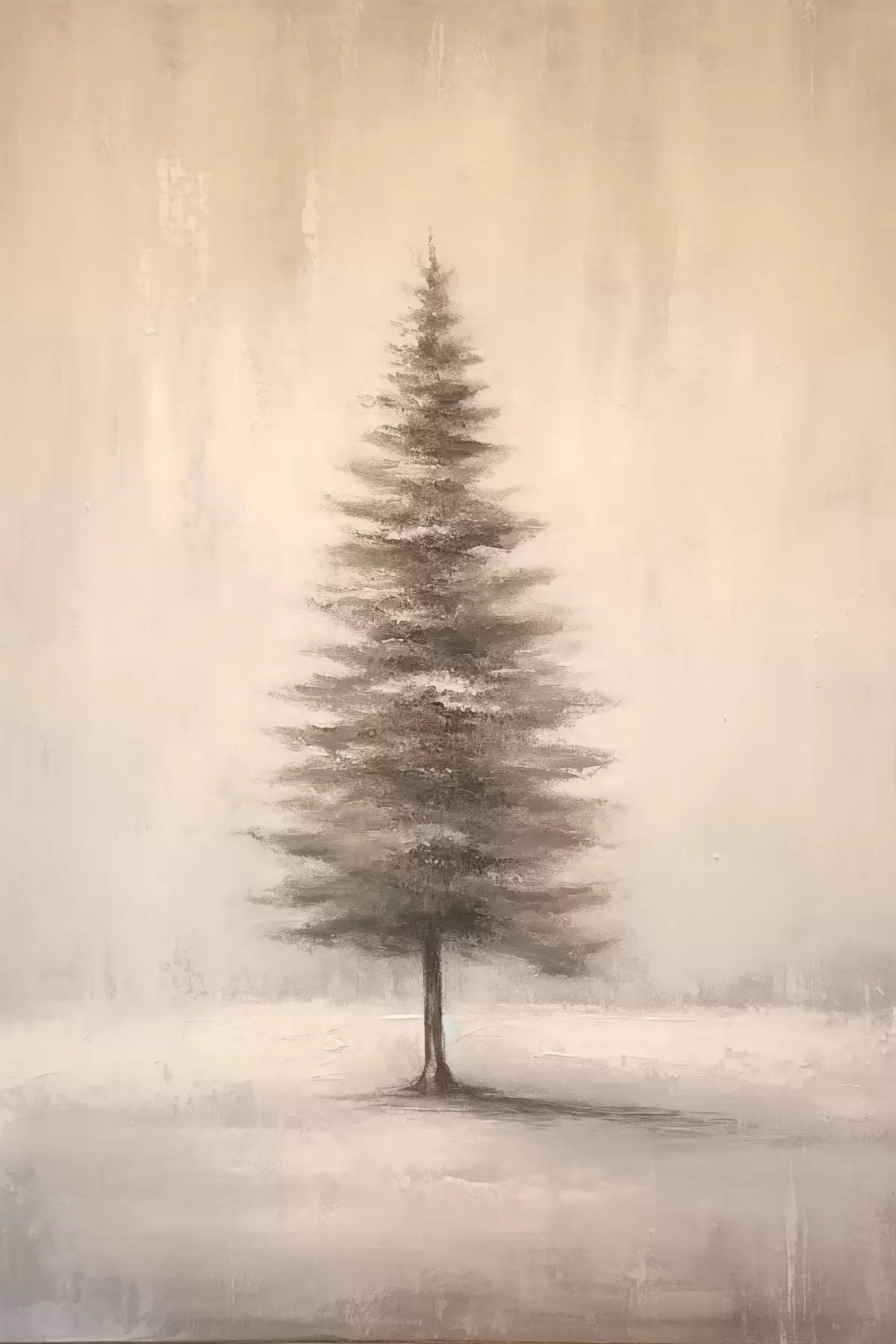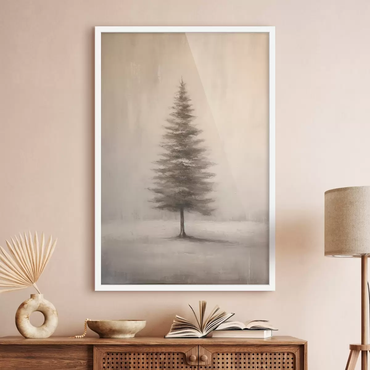 Poster Monochrome dennenboom. Minimalistisch winterlandschap N° f46465