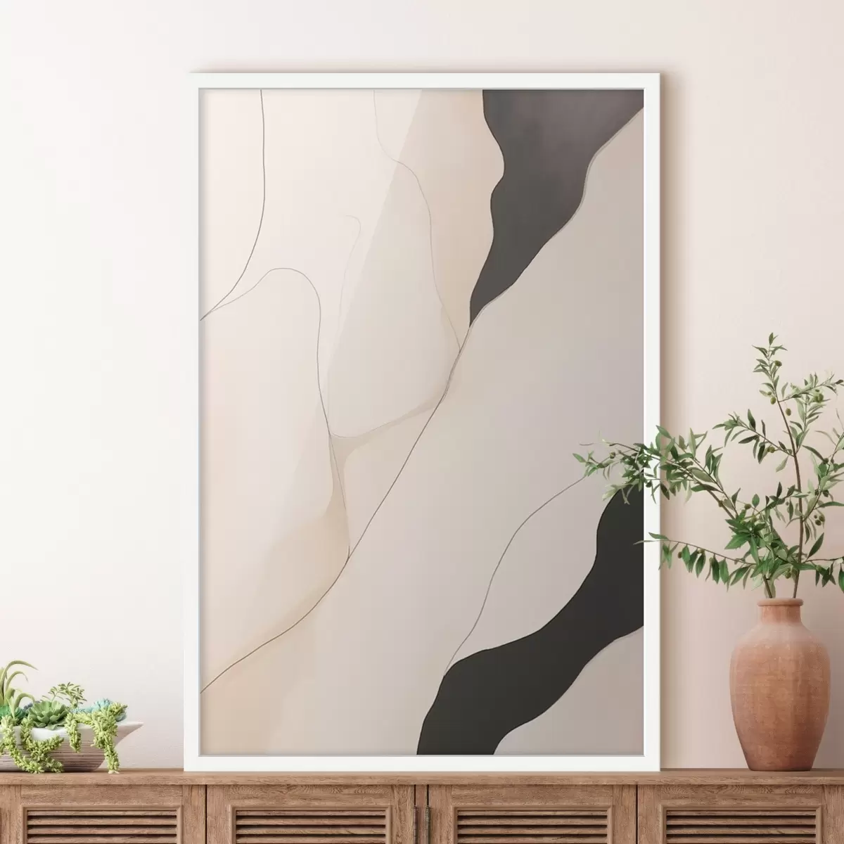 De poster bestaat uit een frame, plexiglas, geprinte afbeelding en spaanplaat achterkant. De poster kan meteen aan de muur worden gehangen dankzij de bevestigingen op de achterkant.