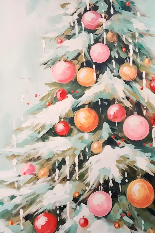 Poster Kerstboom met sneeuw en roze ballen N° f46480