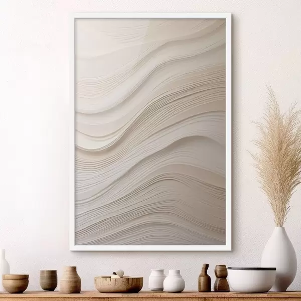Poster Gelaagde zandkleurige reliëfgolven, zachte textuur f46484
