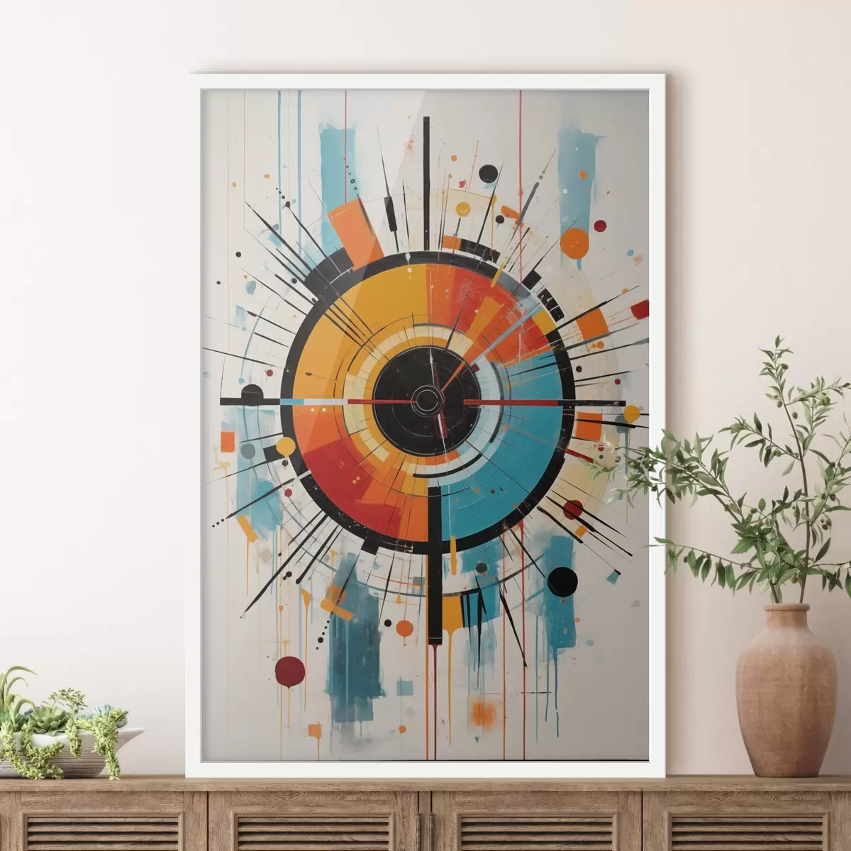 Poster Radiale barst in blauwgroen, oranje en zwart N° f46485