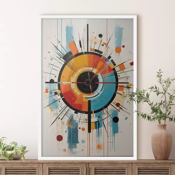 Poster Radiale barst in blauwgroen, oranje en zwart f46485