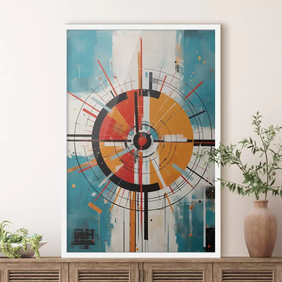 Poster Concentrisch doel met blauwgroene en oranje segmenten N° f46486