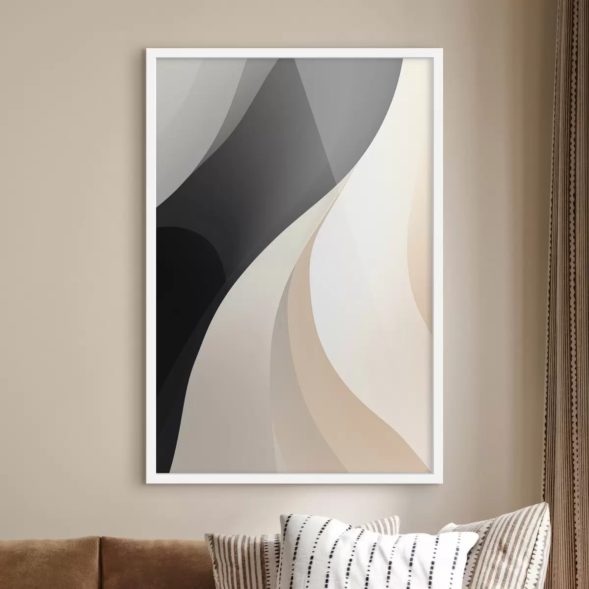 Poster Strakke overlappende rondingen in antraciet, ivoor en zand N° f46493