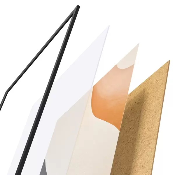 De poster bestaat uit een frame, plexiglas, geprinte afbeelding en spaanplaat achterkant. De poster kan meteen aan de muur worden gehangen dankzij de bevestigingen op de achterkant.