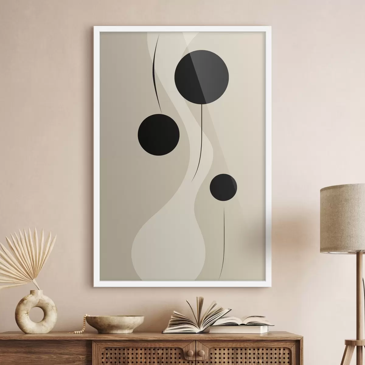 Poster Minimalistische cirkels op beige met vloeiende lijnen N° f46496