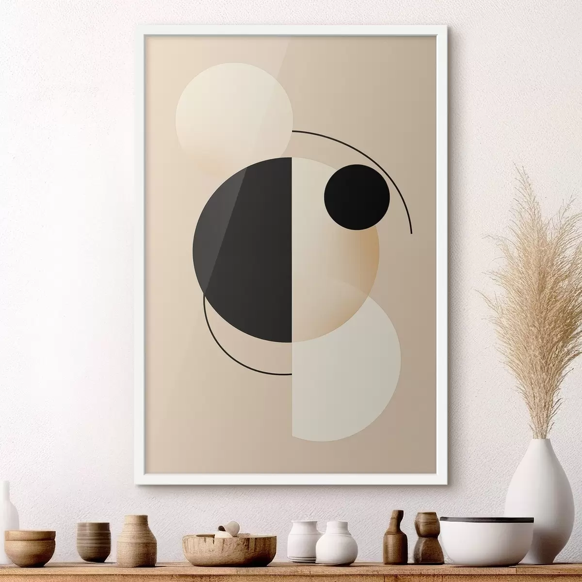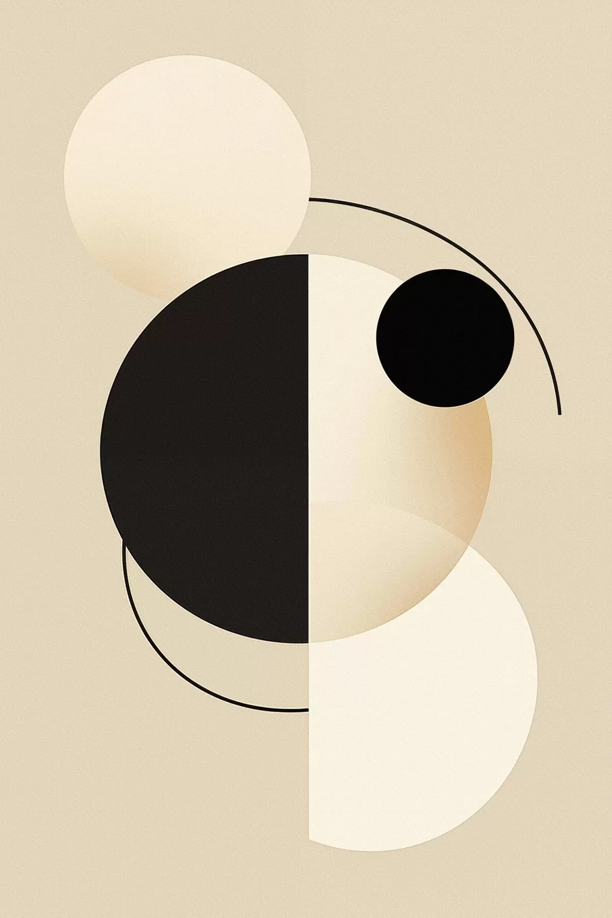 Poster Grafische cirkels en bogen in zacht beige en zwart N° f46497