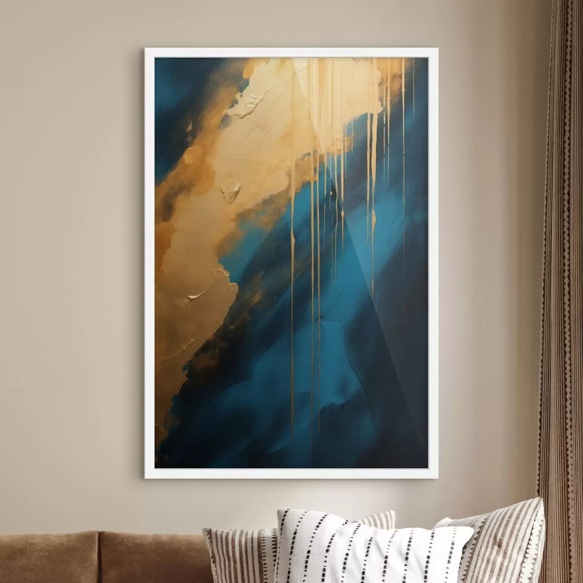 Poster Teal en diepblauw abstract met vloeiende warme accenten N° f46509