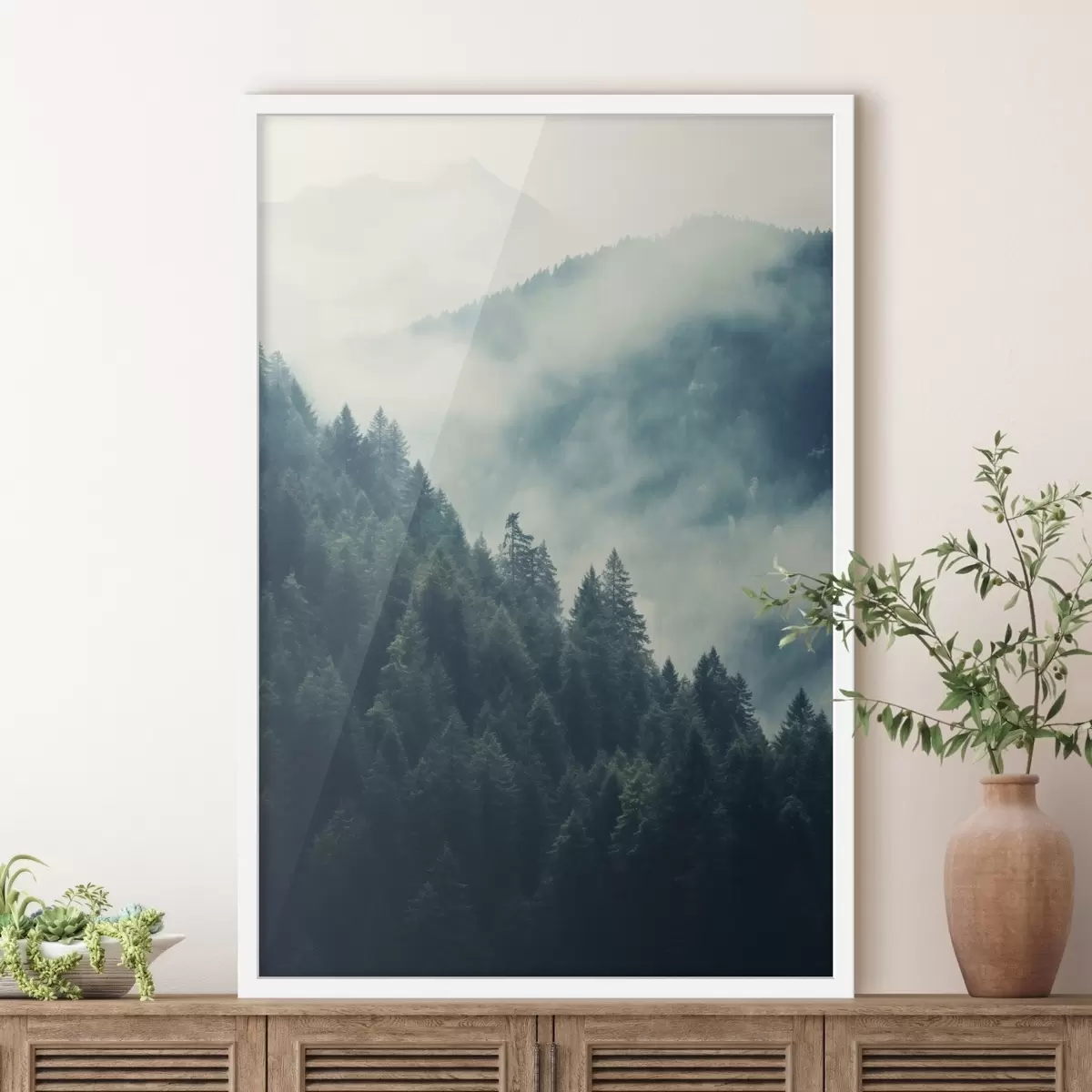 Poster Mistige bergkammen en donkere naaldbossen N° f46518