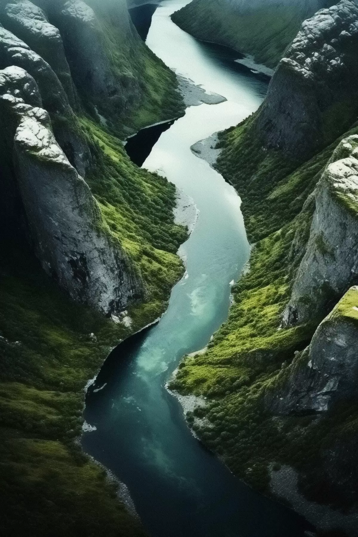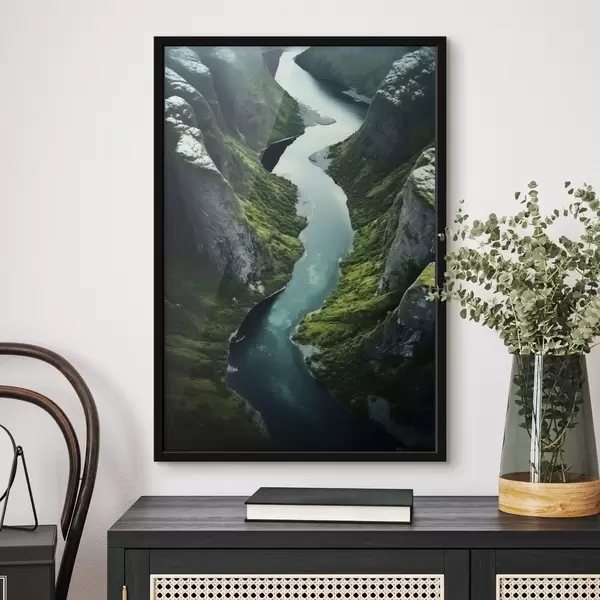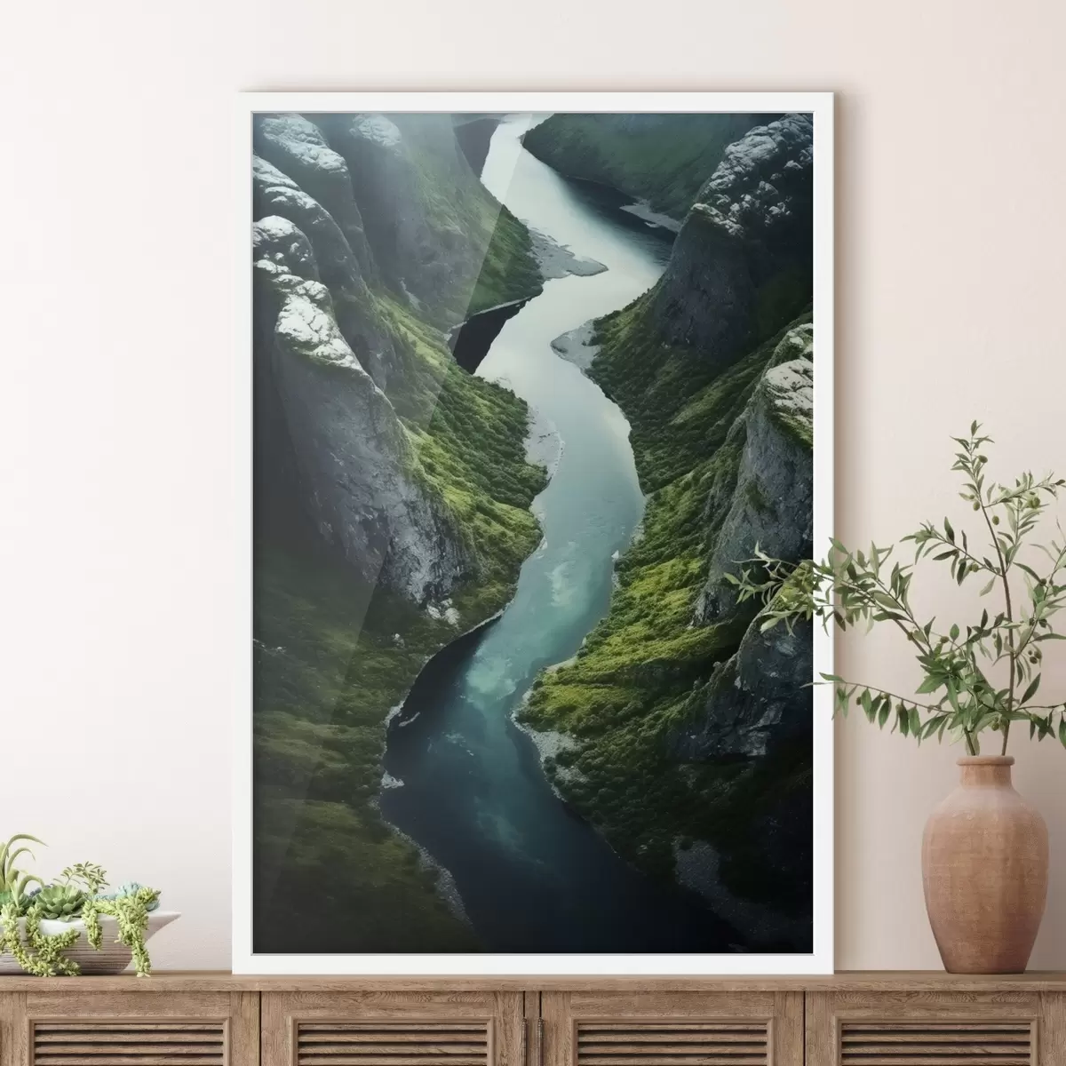 Poster Kronkelende rivier tussen kliffen, luchtfoto N° f46521