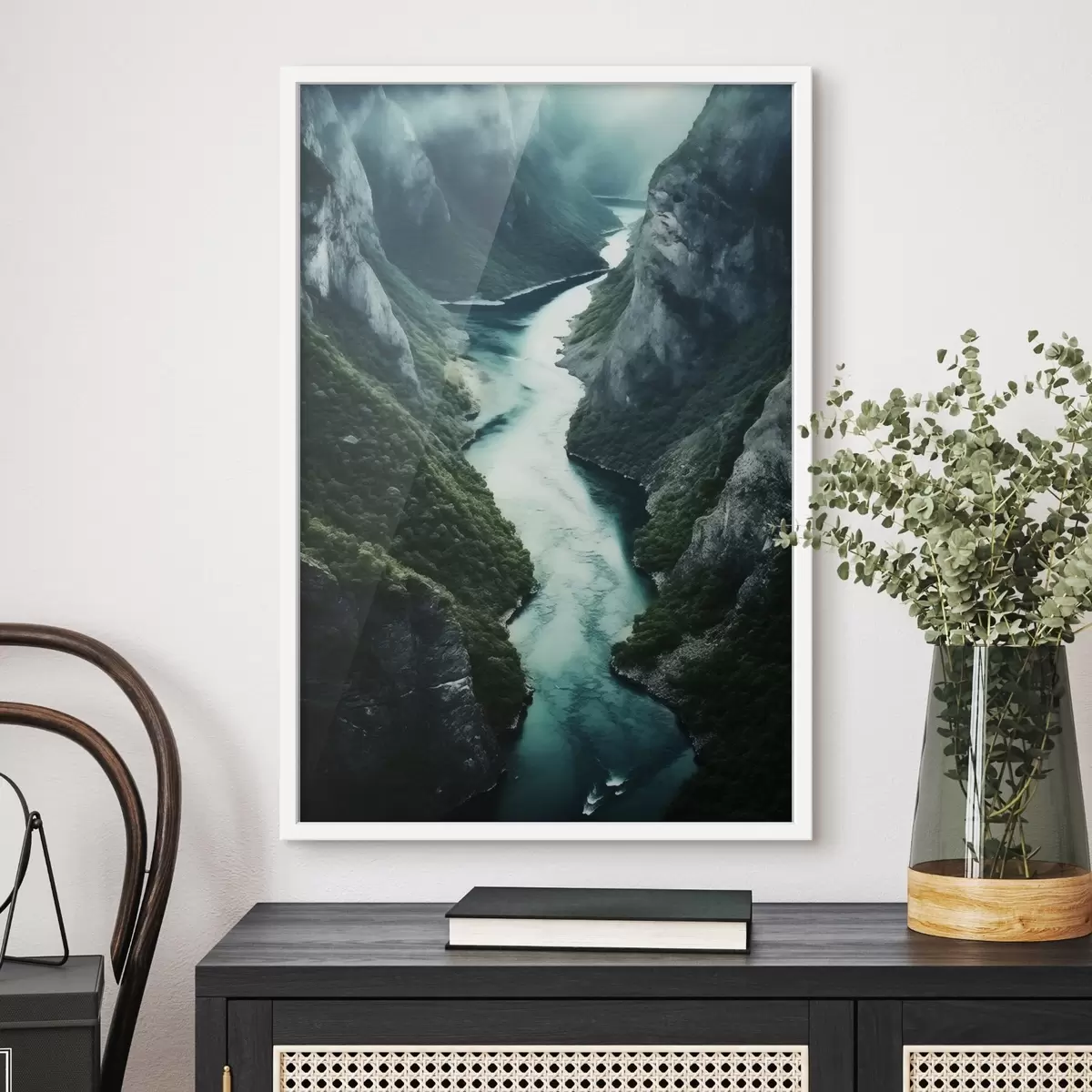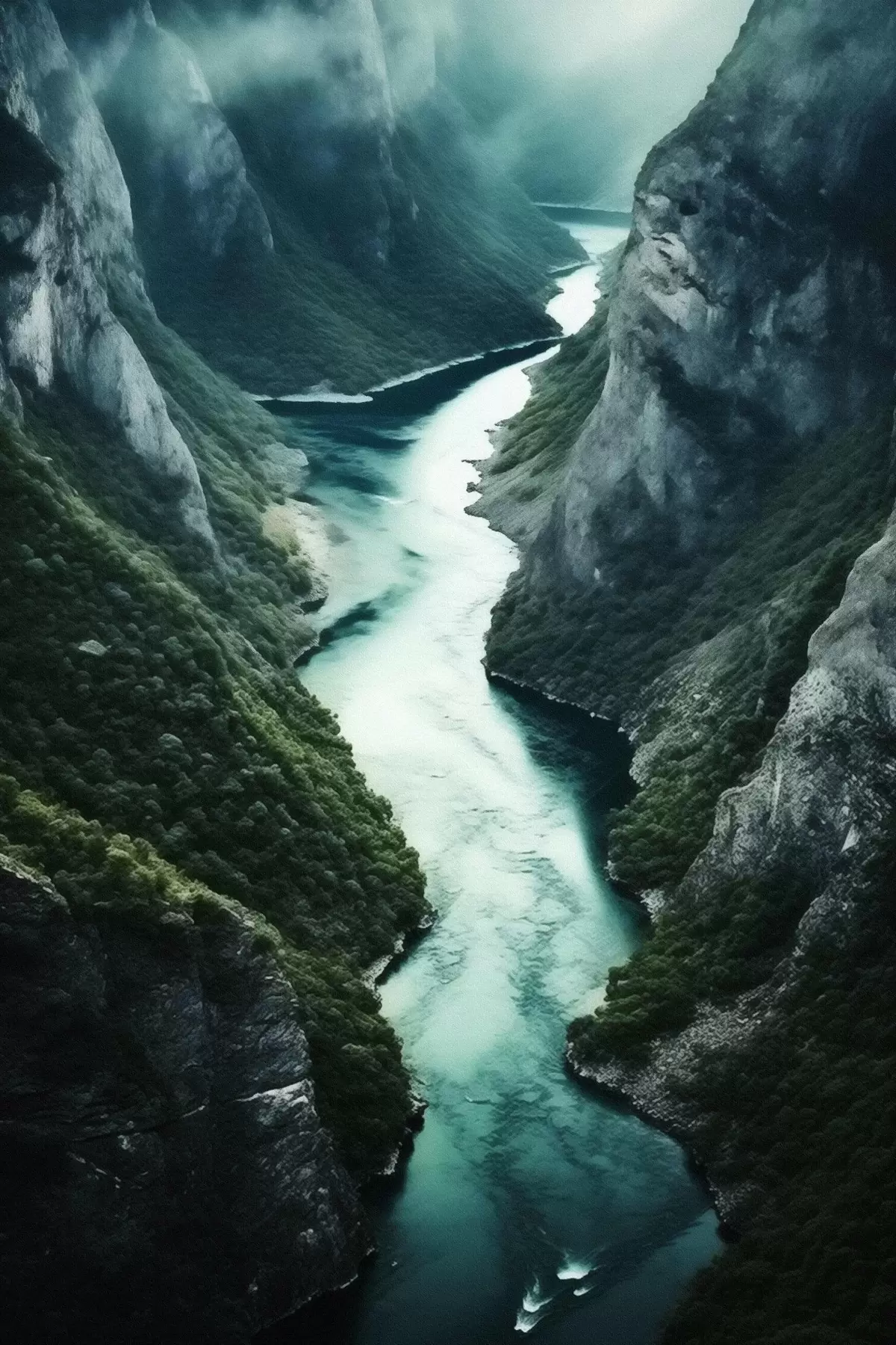 Poster Smalle kloof met een turquoise stroom van bovenaf N° f46522