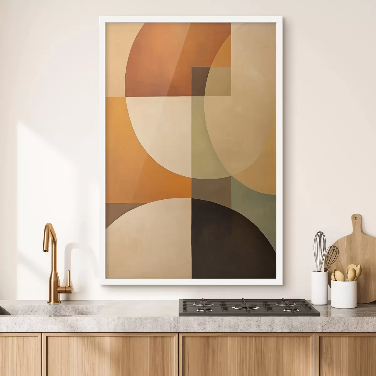 Poster Grote, elkaar kruisende vormen in terracotta-olijfkleurige tinten N° f46533