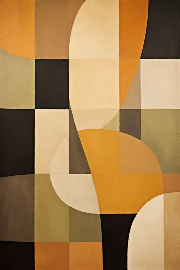 Poster Patchwork van rechthoeken met een vloeiende oranje boog N° f46534