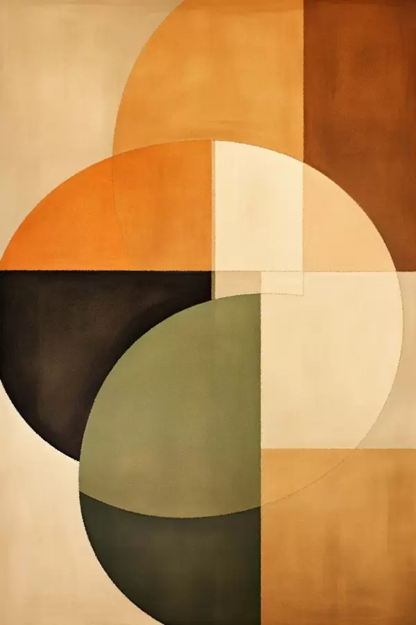 Poster Kruisende cirkels in een zand-olijfkleurig palet N° f46537