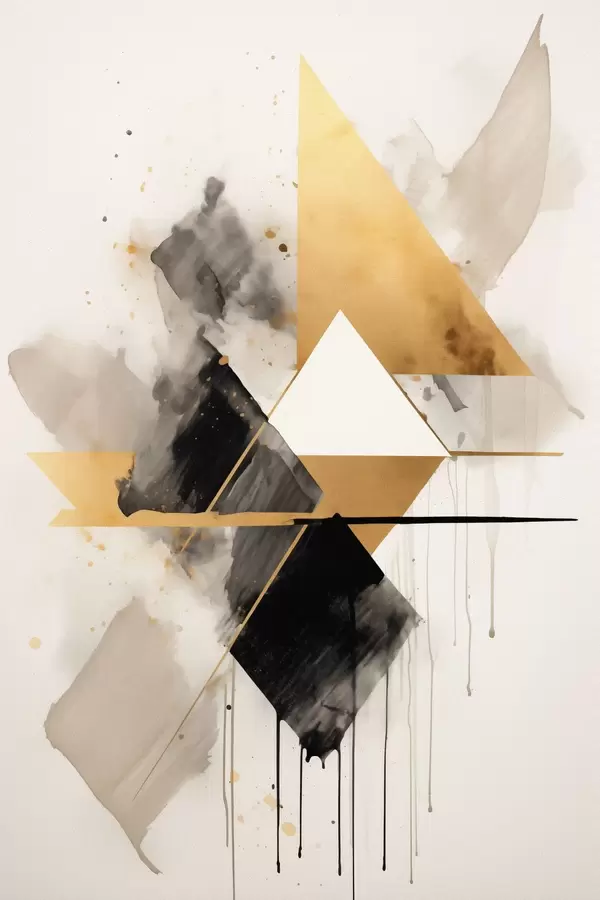 Poster Geometrie met driehoeken en een zwarte ruit, beige lijnen N° f46539