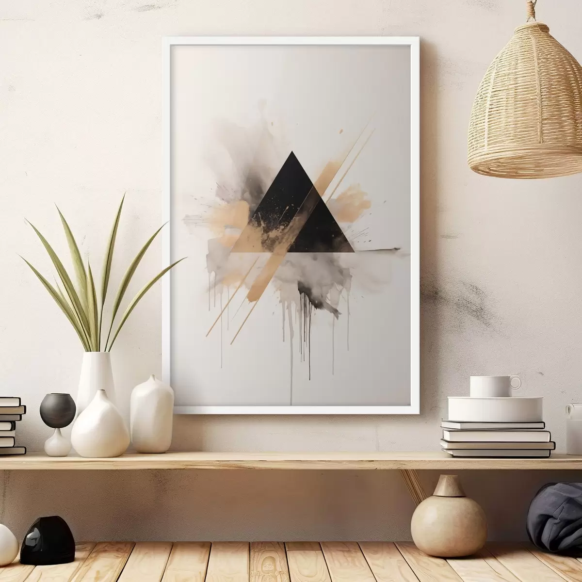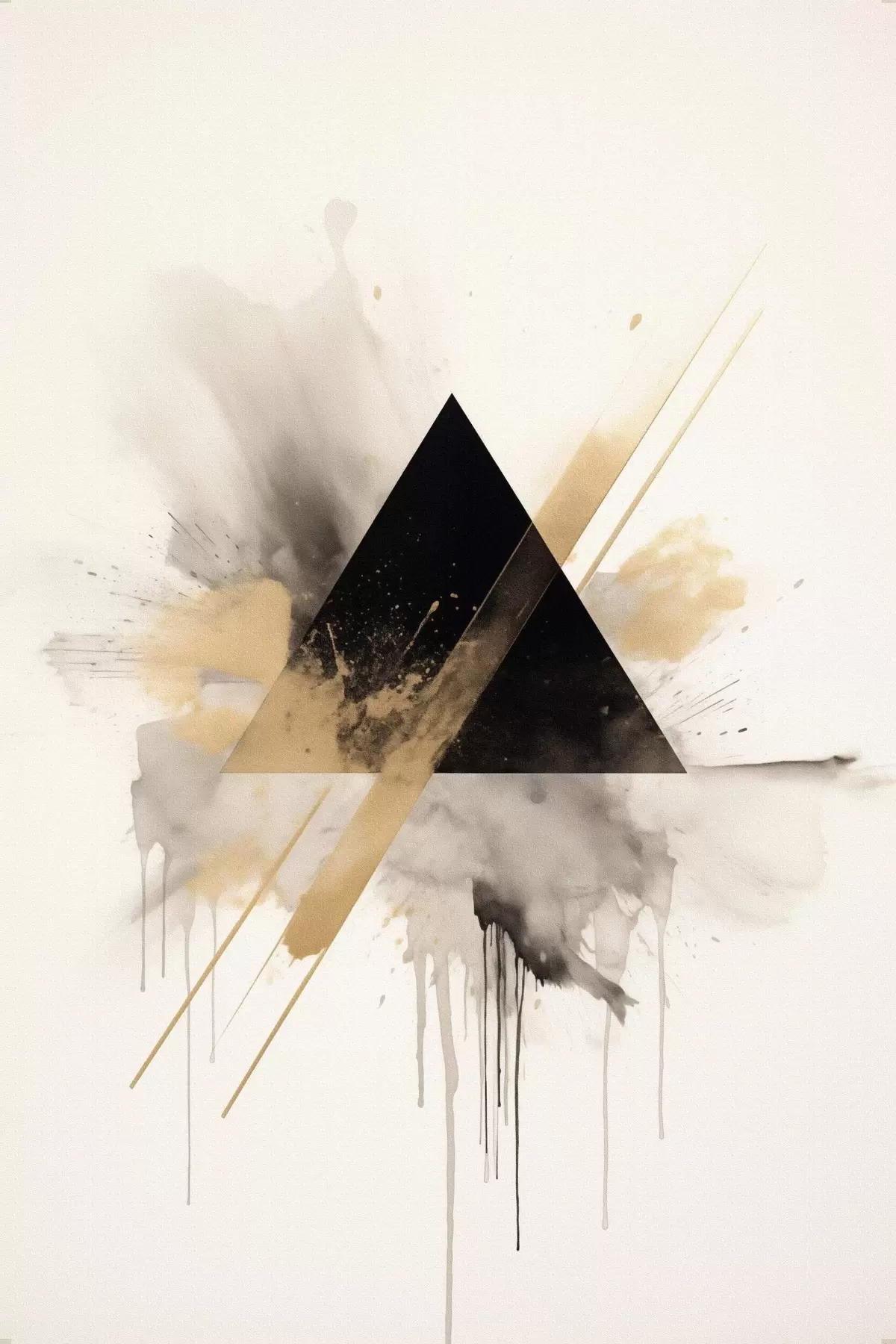 Poster Geometrie: zwarte driehoek met lichte spatten en lijnen N° f46540