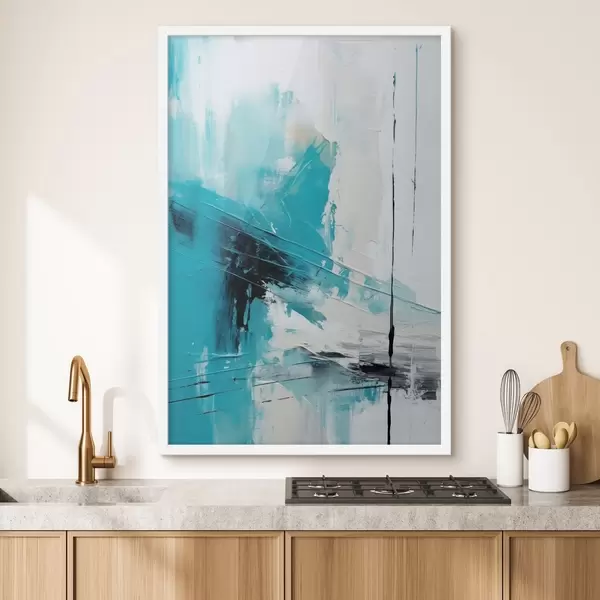 Poster Turquoise strepen op wit met een zwart streepje N° f46545