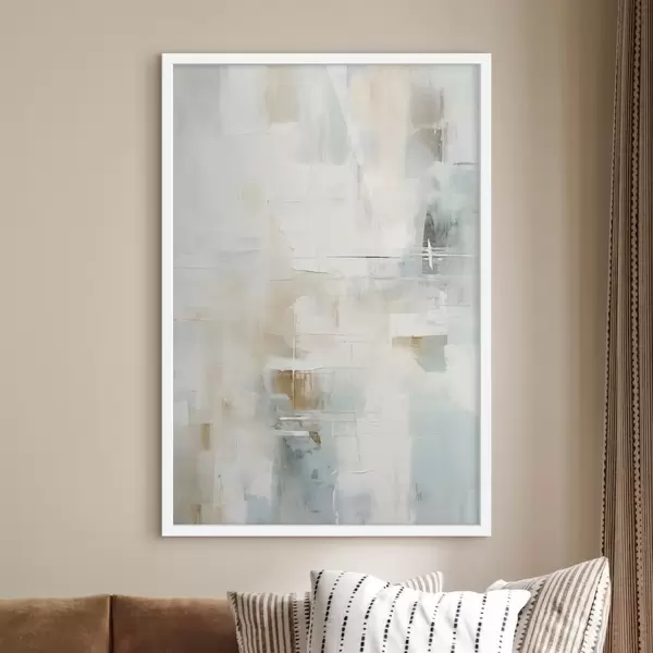 Poster Luchtige streken van blauw en beige op wit f46547