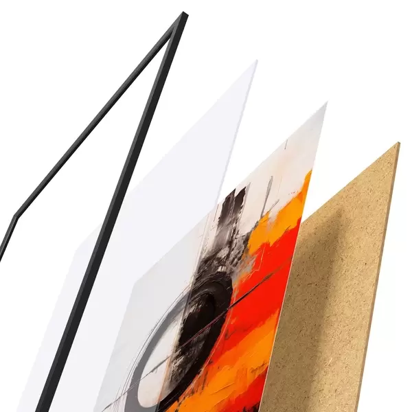 De poster bestaat uit een frame, plexiglas, geprinte afbeelding en spaanplaat achterkant. De poster kan meteen aan de muur worden gehangen dankzij de bevestigingen op de achterkant.
