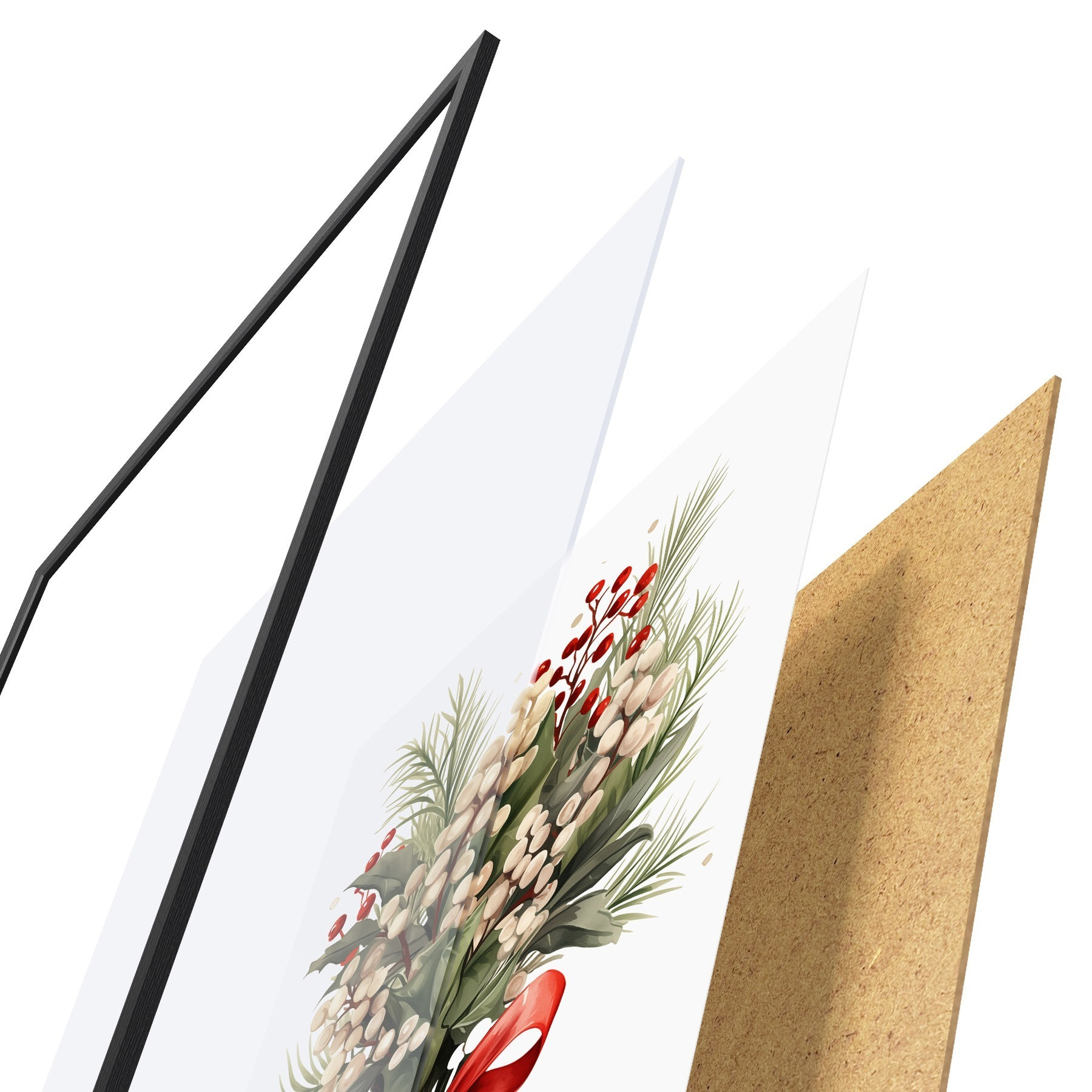 De poster bestaat uit een frame, plexiglas, geprinte afbeelding en spaanplaat achterkant. De poster kan meteen aan de muur worden gehangen dankzij de bevestigingen op de achterkant.