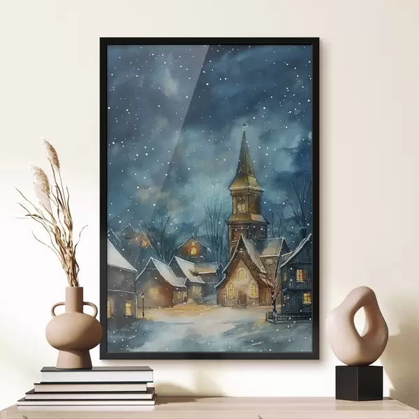 De poster bestaat uit een frame, plexiglas, geprinte afbeelding en spaanplaat achterkant. De poster kan meteen aan de muur worden gehangen dankzij de bevestigingen op de achterkant.