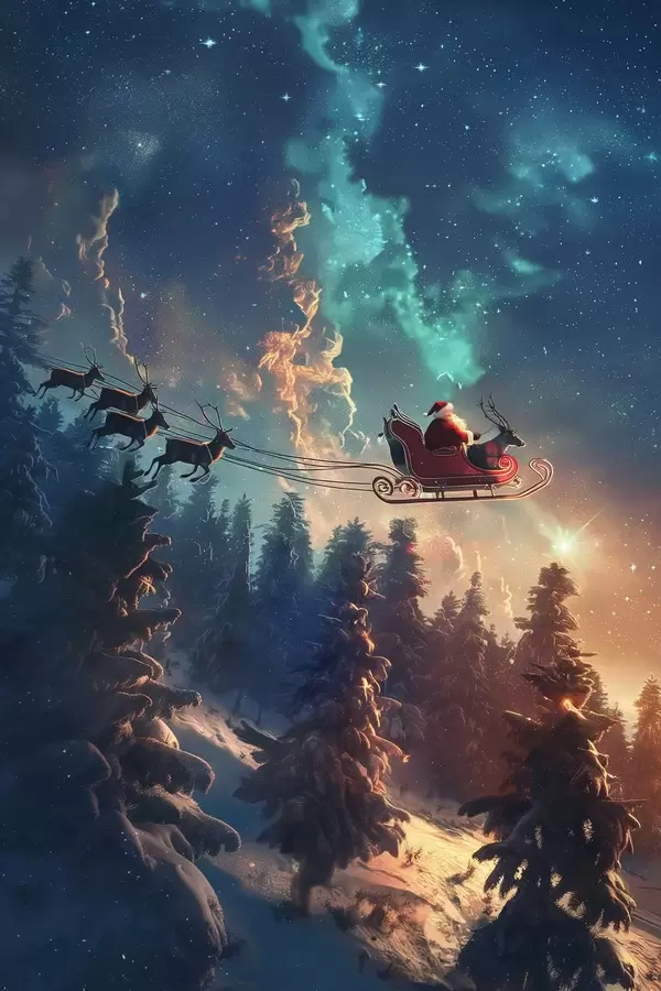 Poster Kerstman op rendieren f46602