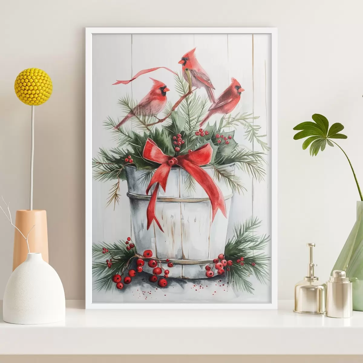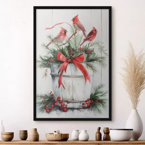 Poster Vogels op een kerstpot N° f46607
