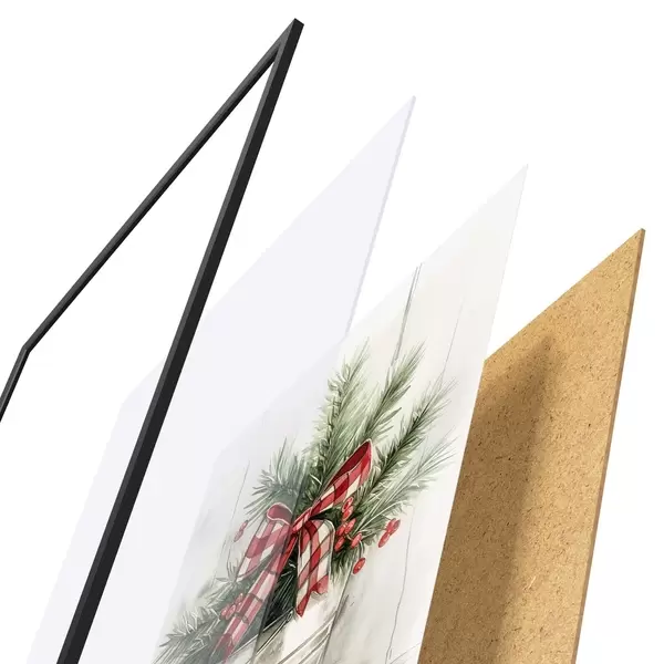 De poster bestaat uit een frame, plexiglas, geprinte afbeelding en spaanplaat achterkant. De poster kan meteen aan de muur worden gehangen dankzij de bevestigingen op de achterkant.