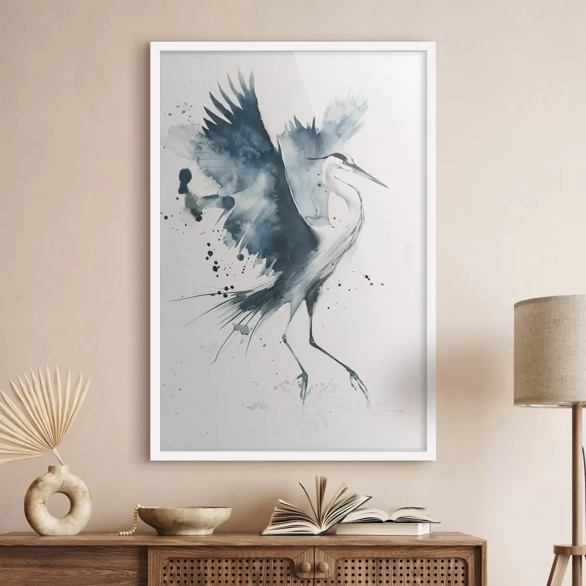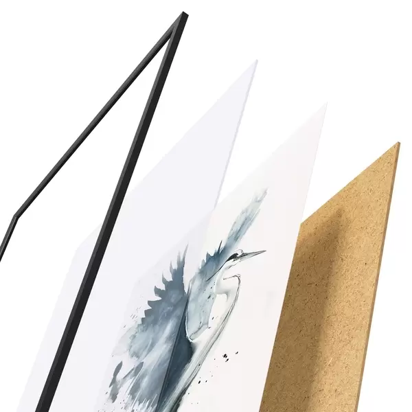 De poster bestaat uit een frame, plexiglas, geprinte afbeelding en spaanplaat achterkant. De poster kan meteen aan de muur worden gehangen dankzij de bevestigingen op de achterkant.